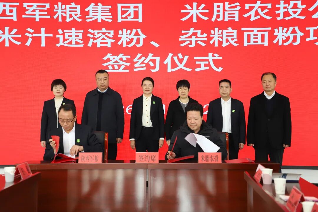 仪式现场,县农投公司总经理朱雄介绍了项目建设背景;陕西军粮集团副总经理何洪涛详解了项目筹备与发展规划。在全场嘉宾见证下,双方代表完成签约。此次签约标志着米脂县在推动农产品深加工、促进农村产业融合发展方面迈出了坚实一步。项目落地后,将进一步延伸小米产业链条,提升产品附加值,助力乡村振兴和县域经济高质量发展。